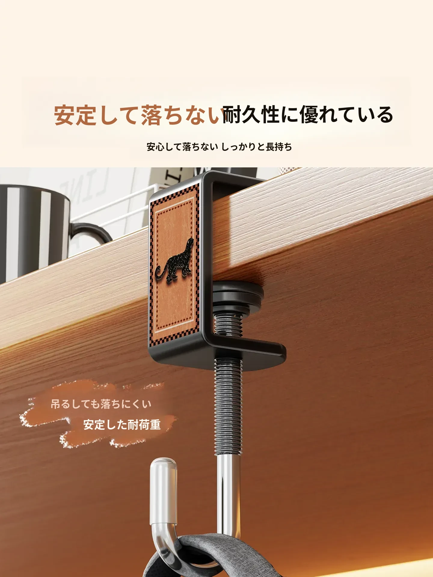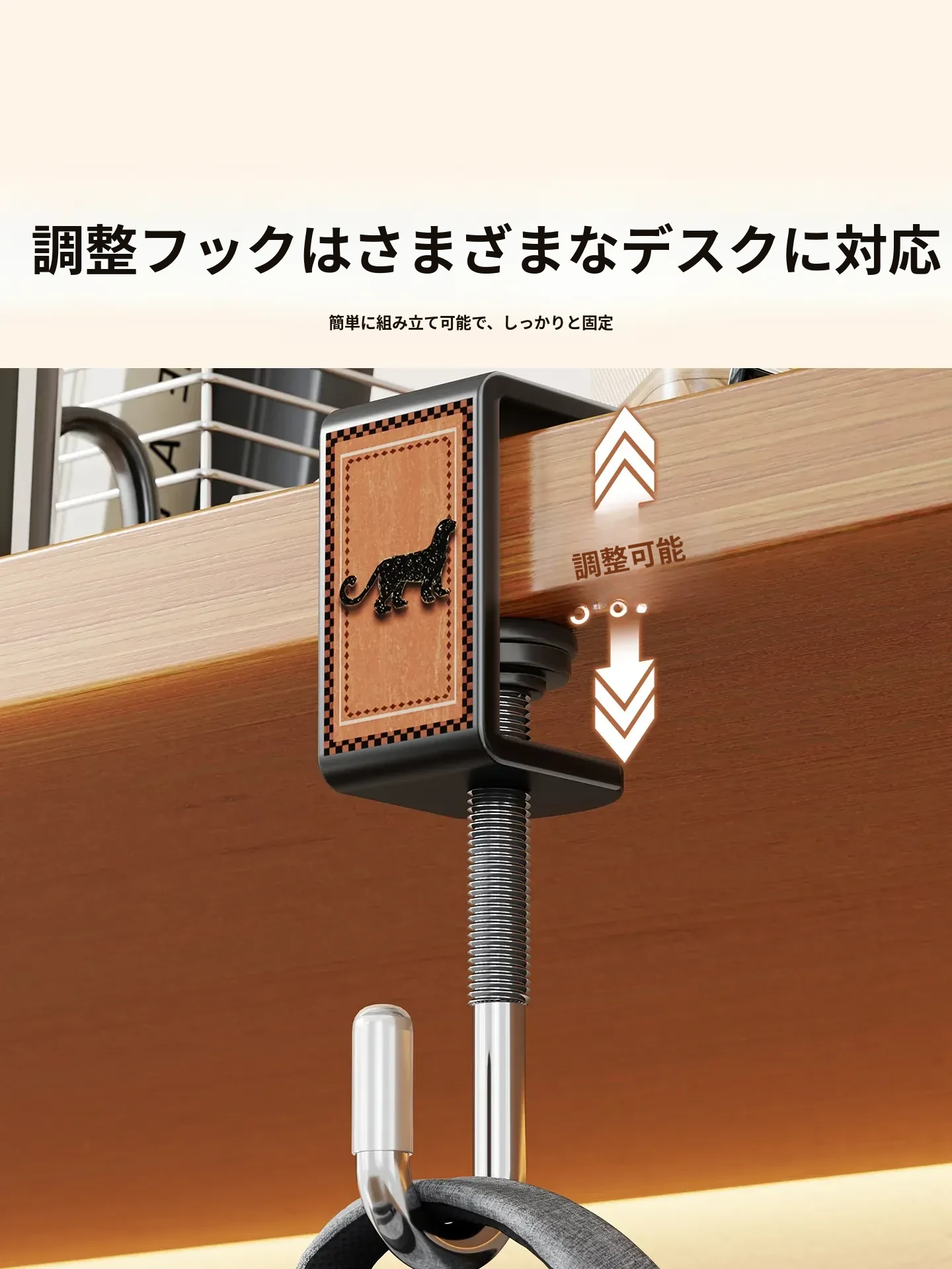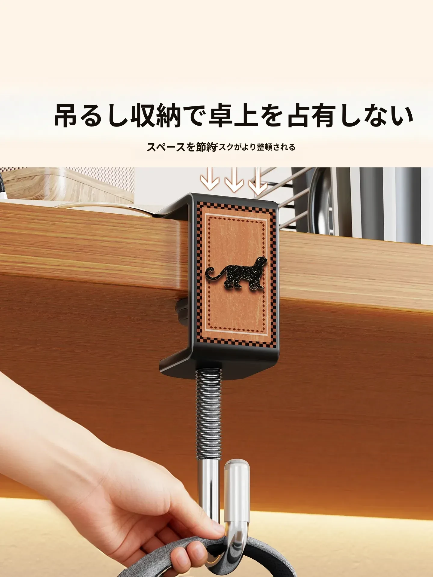 オフィスデスクサイド用バッグハンガー - 取り外し可能なフックで簡単取り付け、穴あけ不要!移動可能で強力な耐荷重、学生の机や書籍に最適!スペースを有効活用し、すっきり整理整頓。
