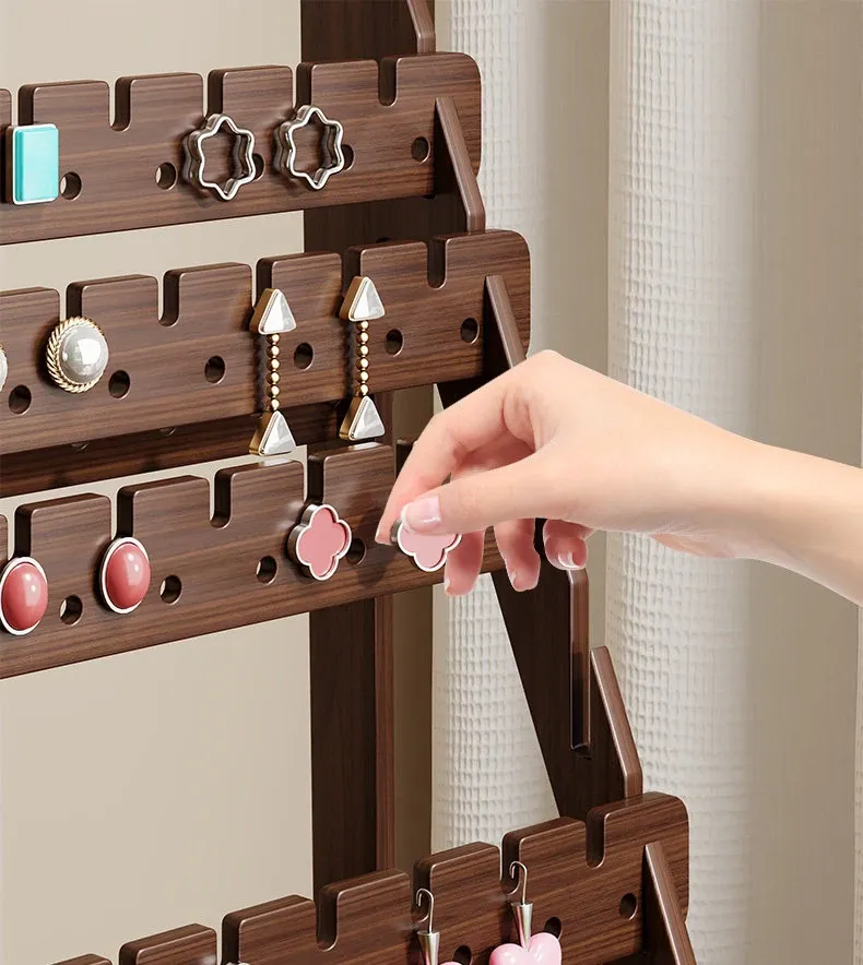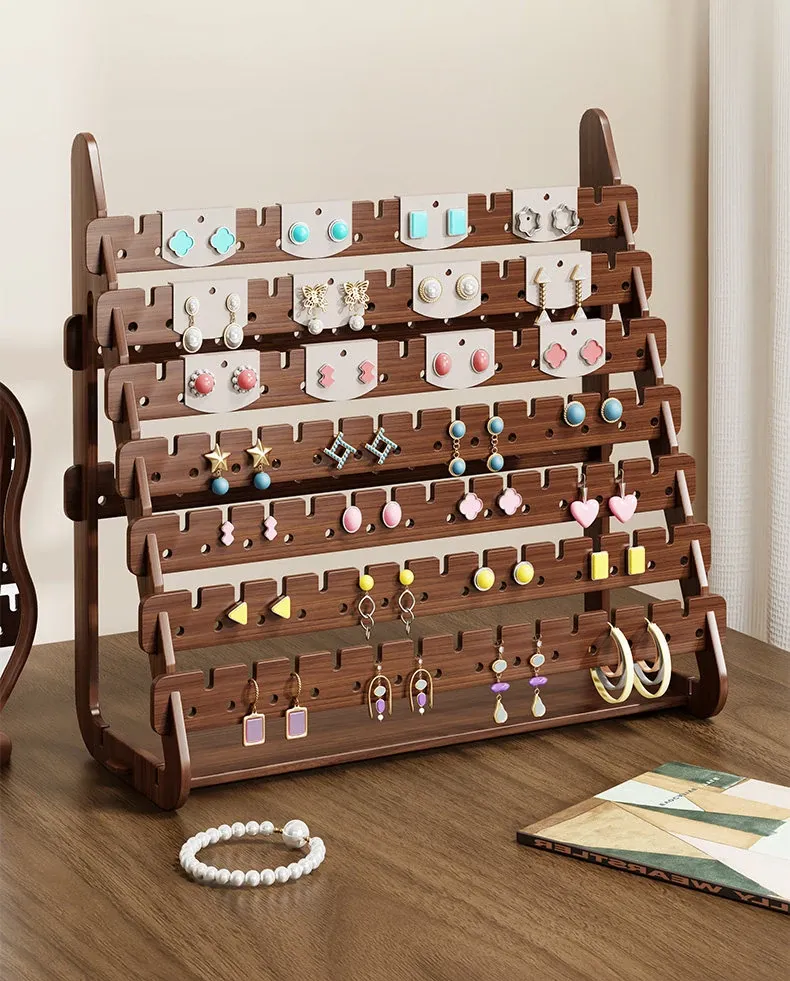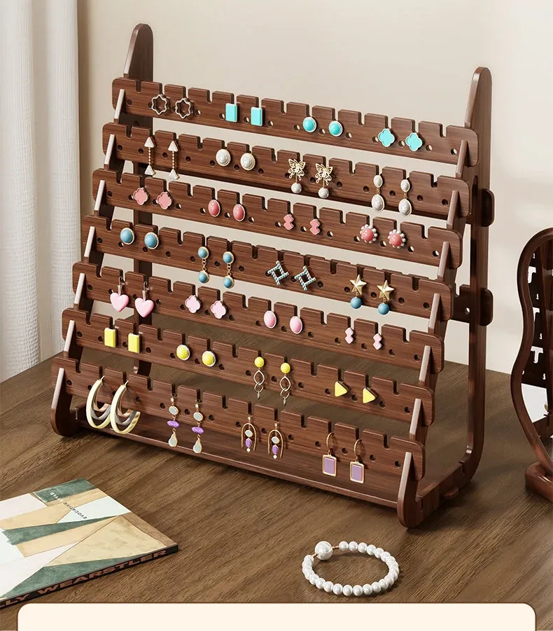 デスクトップ用ジュエリーディスプレイスタンド - 耳飾りやネックレス、ブレスレットを美しく収納!大容量の木製アクセサリーホルダーで、あなたの宝物をオシャレに整理整頓。