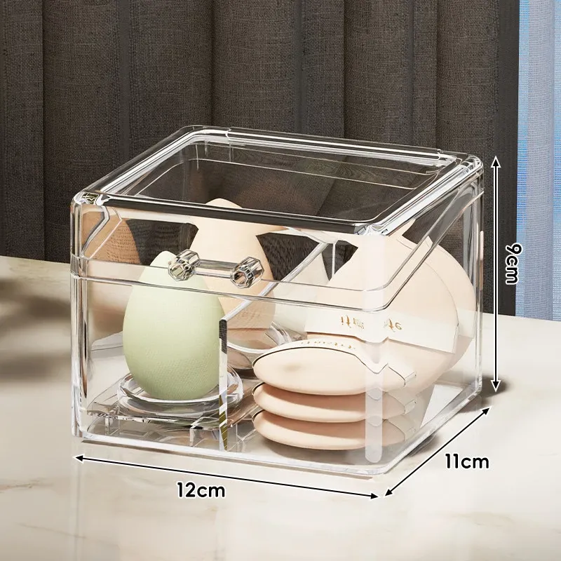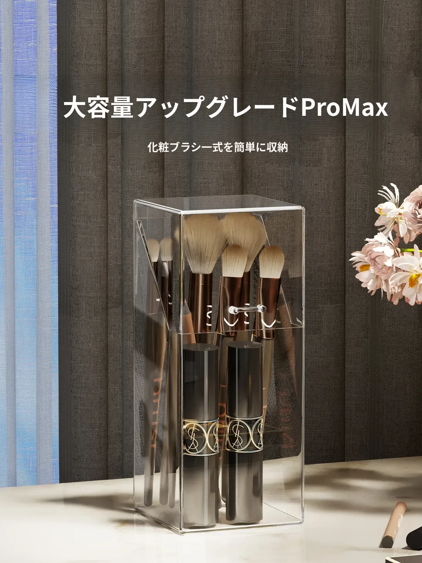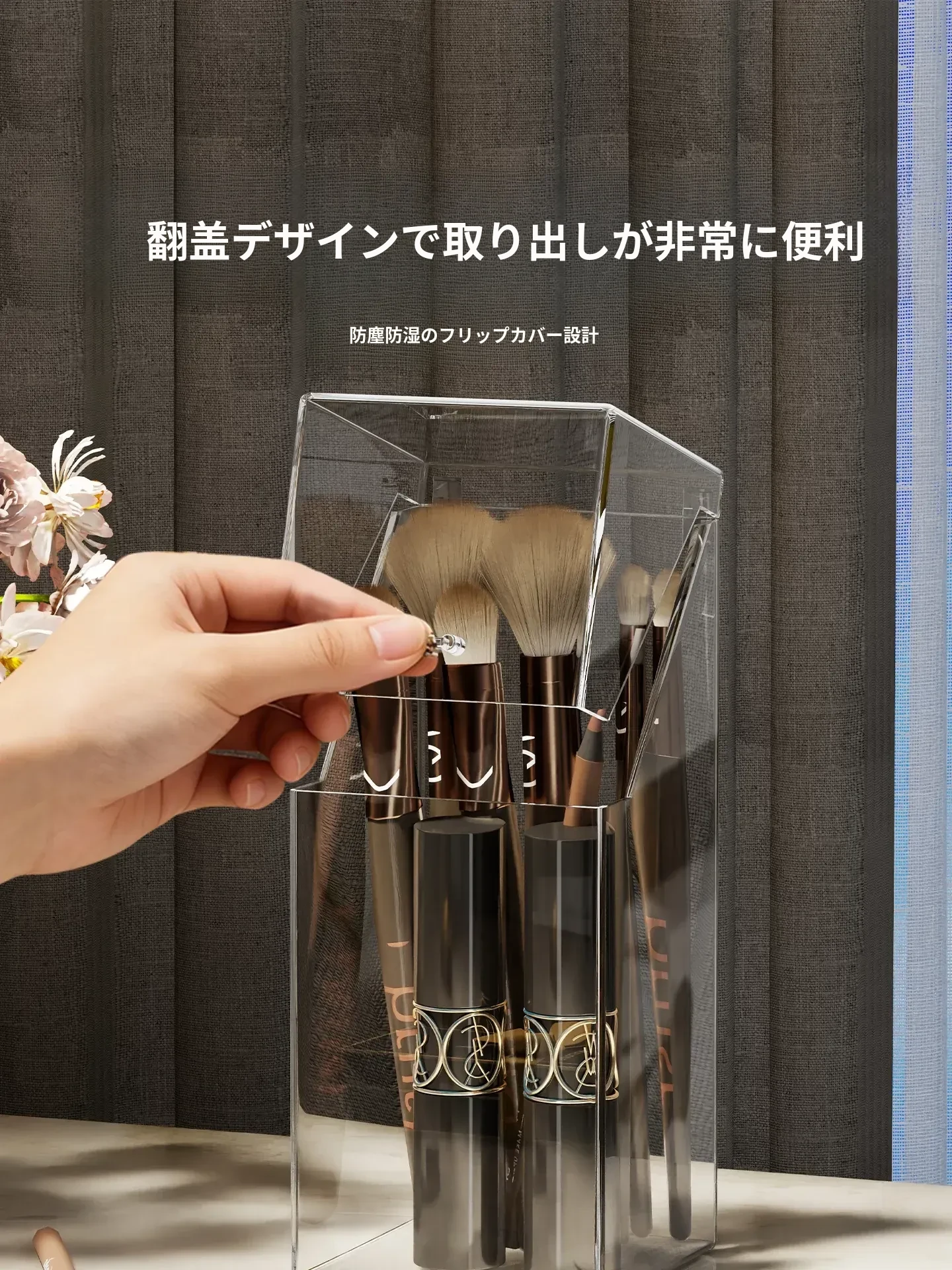 メイクブラシ収納ボックス - 蓋付きの透明な整理筒で、アイシャドウブラシやリップスティックをすっきりと整理!ホコリから守り、美しいドレッサーを演出します。おしゃれで実用的な収納アイテムです!