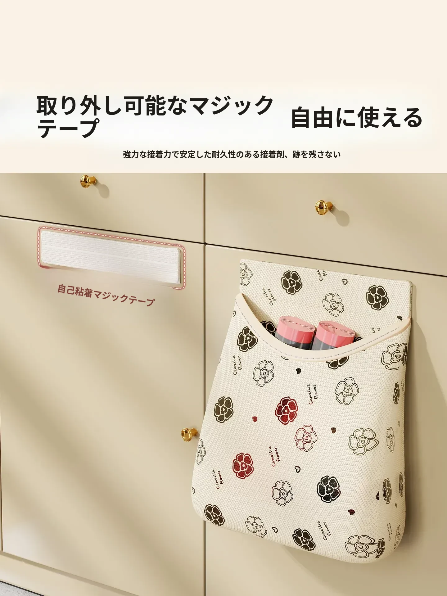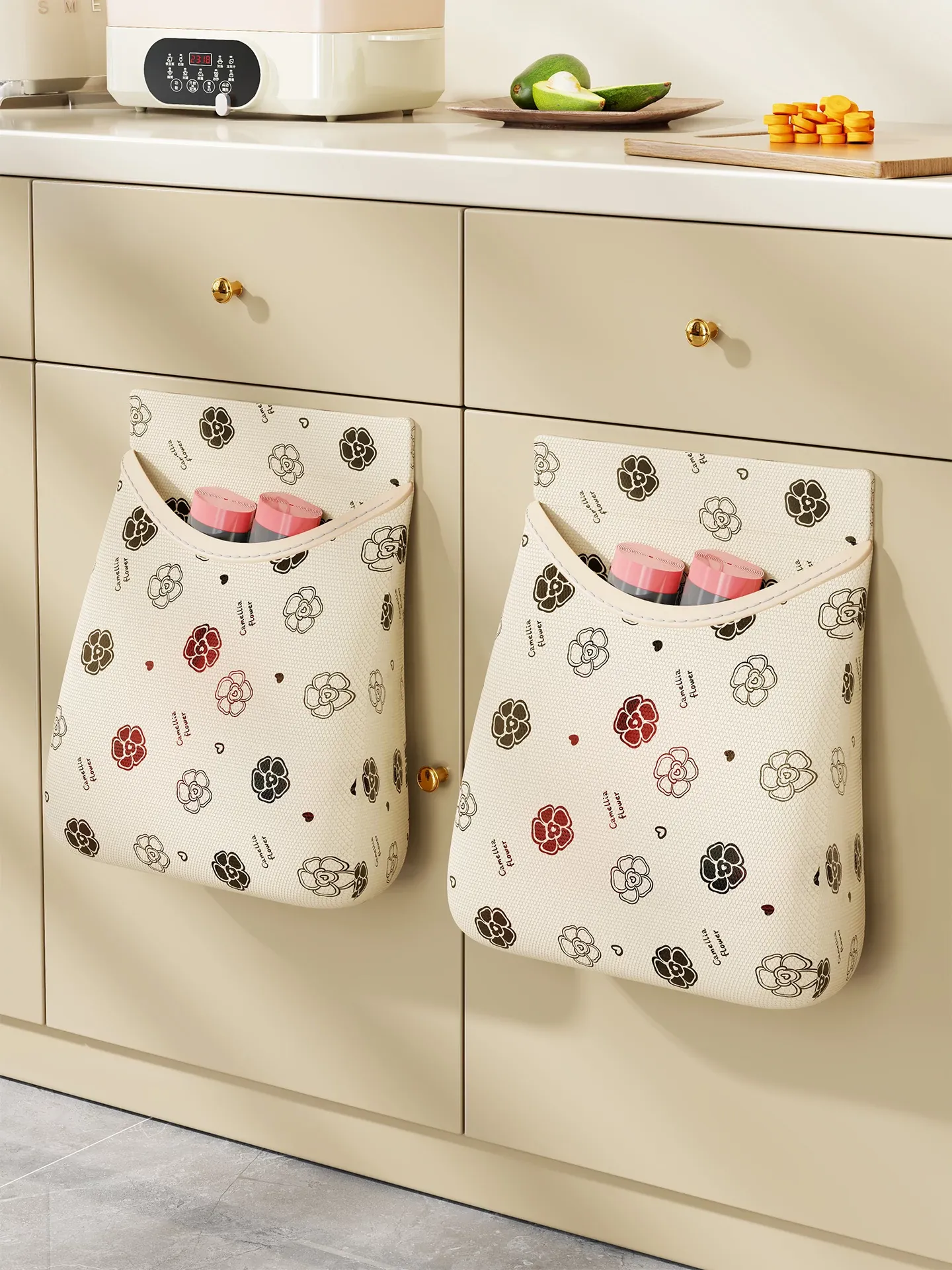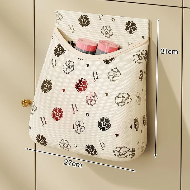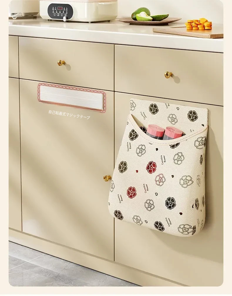 キッチン収納に最適!ゴミ袋収納ボックス 壁掛け式マジックテープネットポケット プラスチック袋・ラップもスッキリ整理!クリーンで便利な空間を実現!