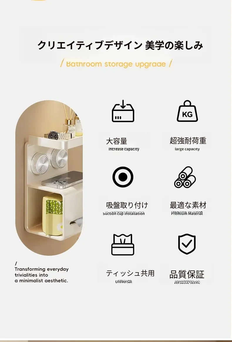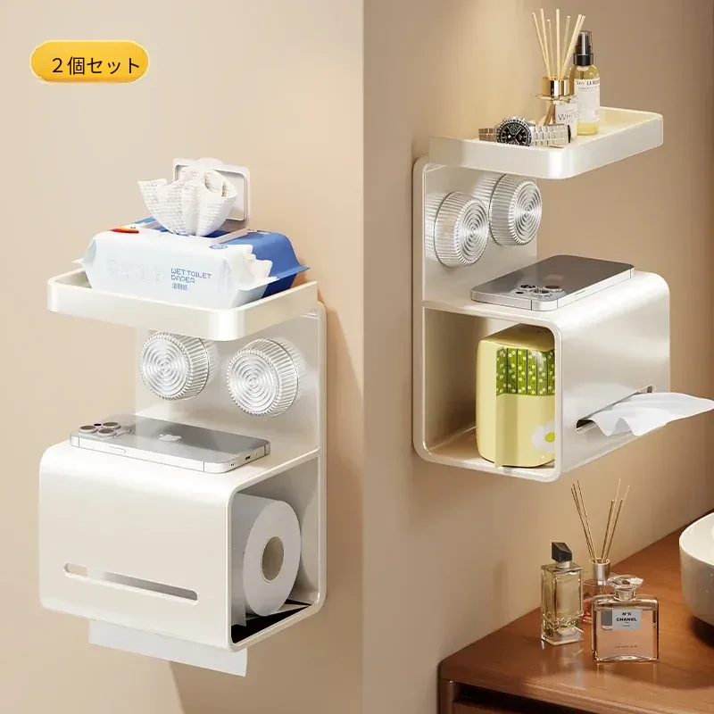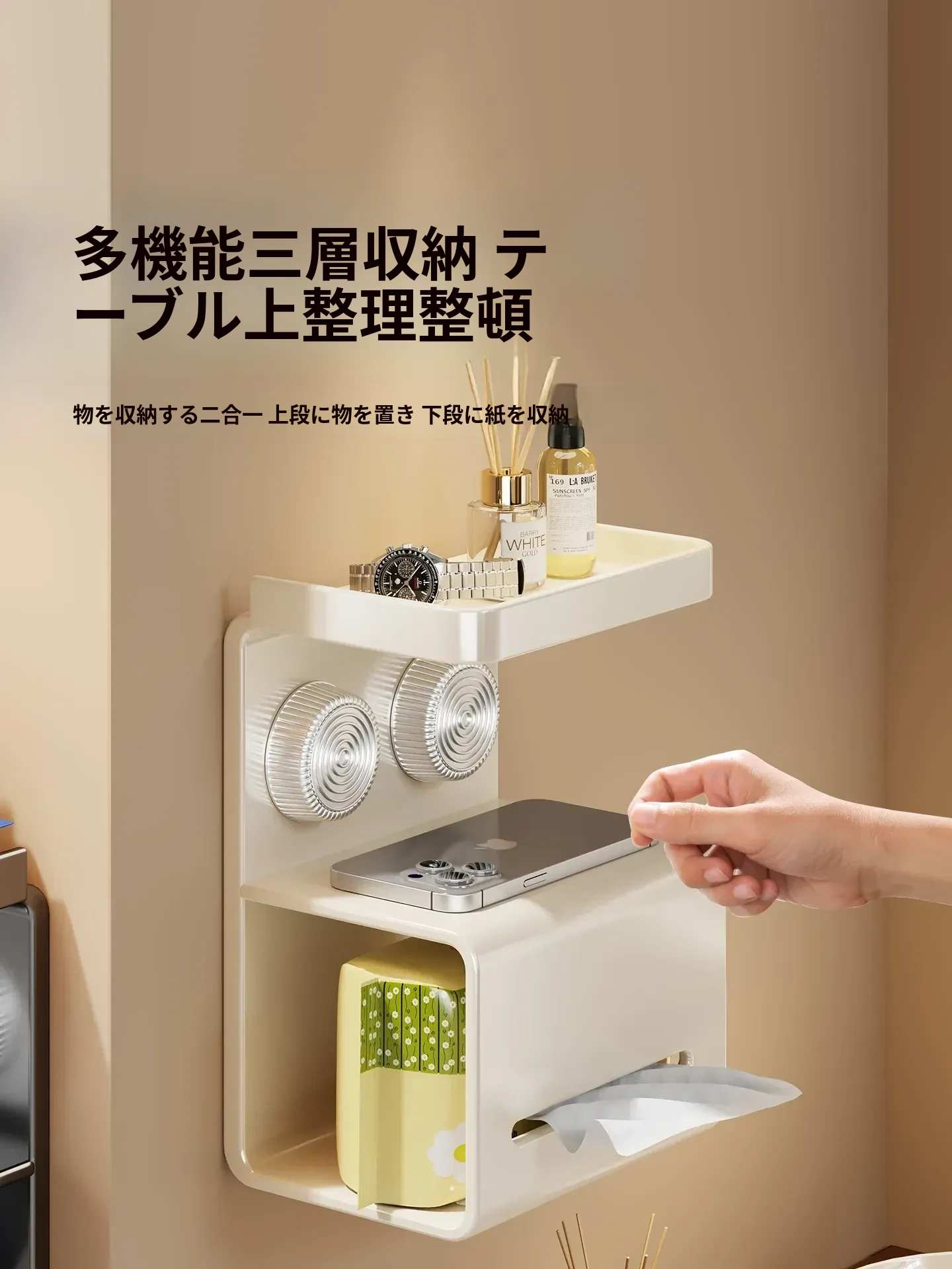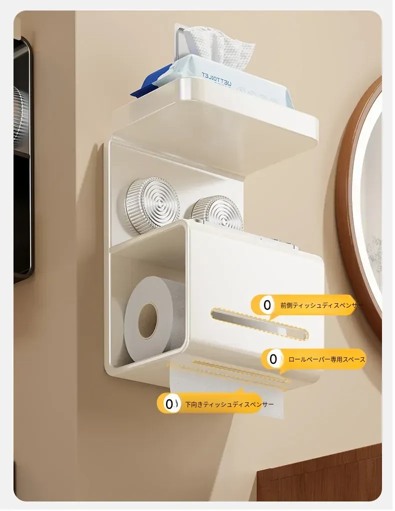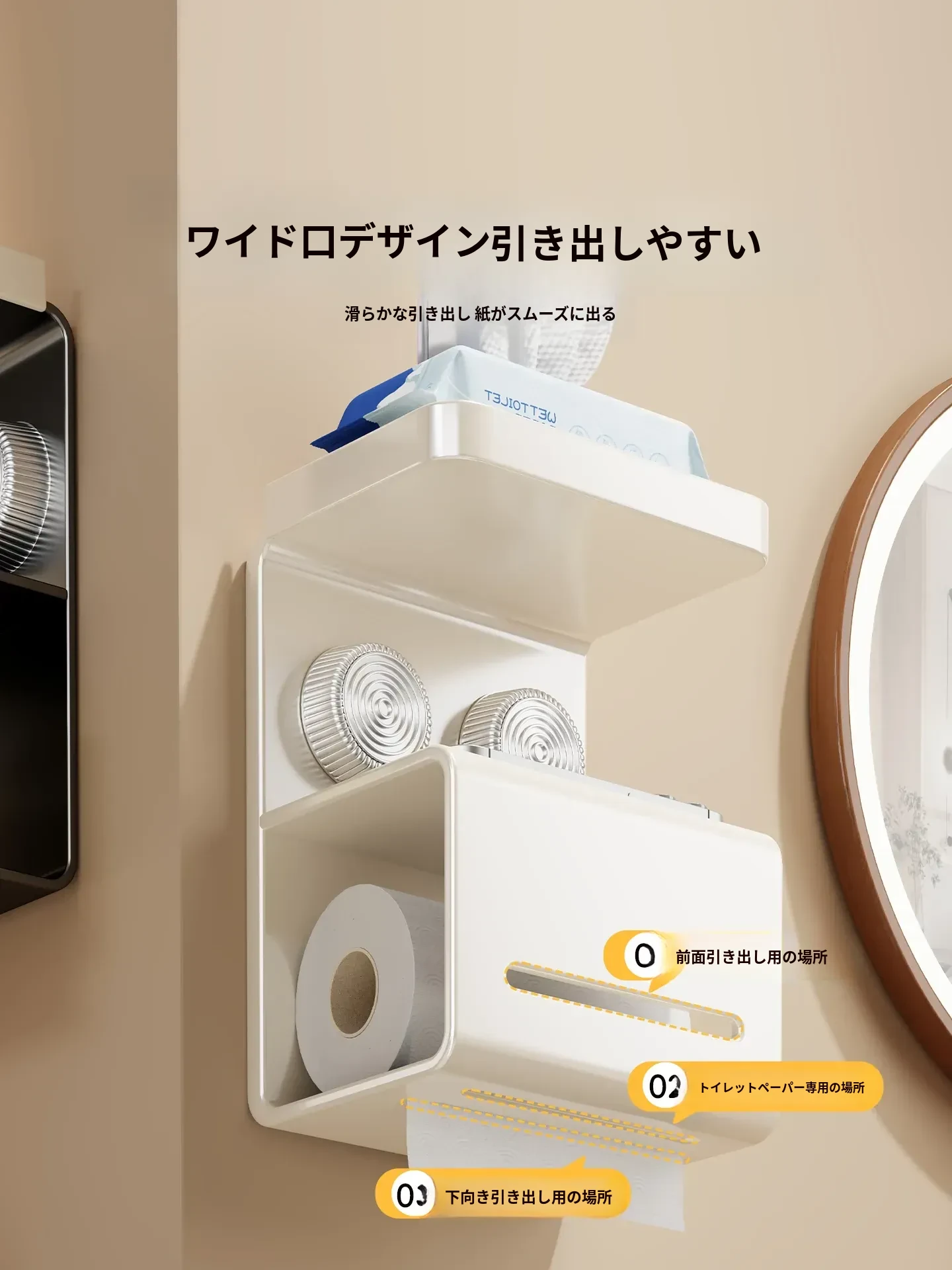 トイレ用吸盤付きティッシュボックス - 壁掛け収納で洗面所やトイレをスッキリ整理!トイレットペーパーやフェイスタオルも簡単に収納できる便利アイテム。清潔感あふれる空間作りに最適です!