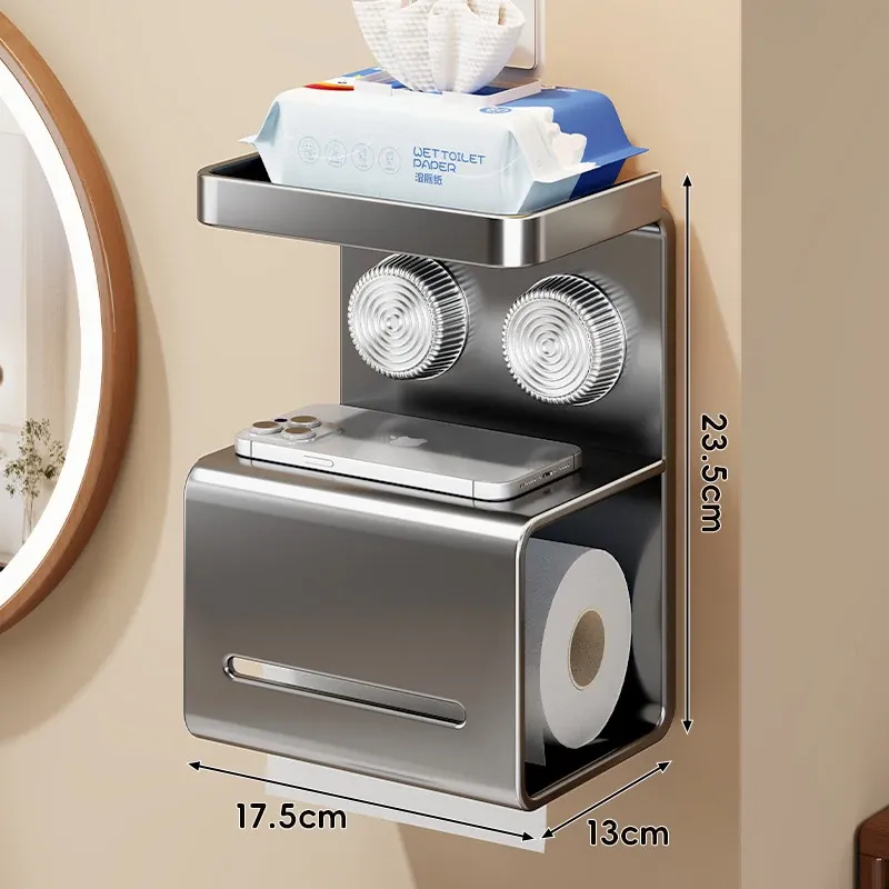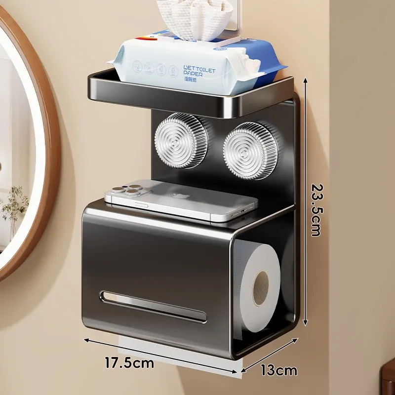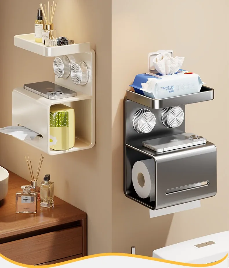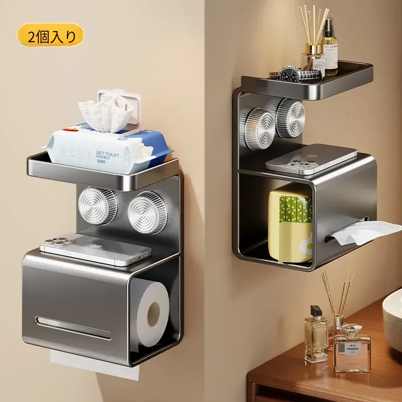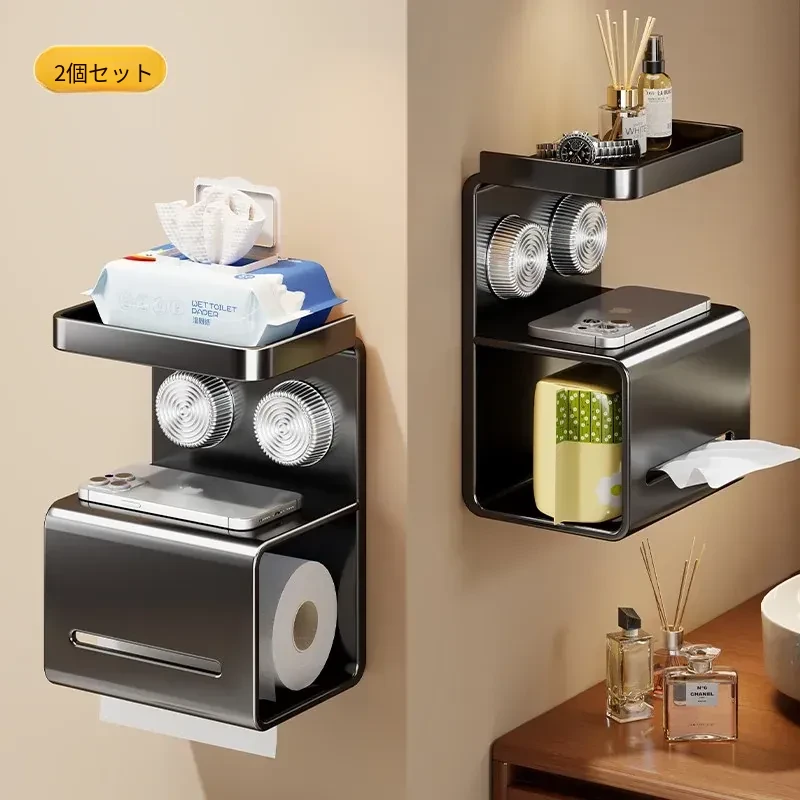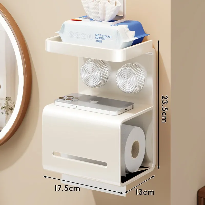 トイレ用吸盤付きティッシュボックス - 壁掛け収納で洗面所やトイレをスッキリ整理!トイレットペーパーやフェイスタオルも簡単に収納できる便利アイテム。清潔感あふれる空間作りに最適です!
