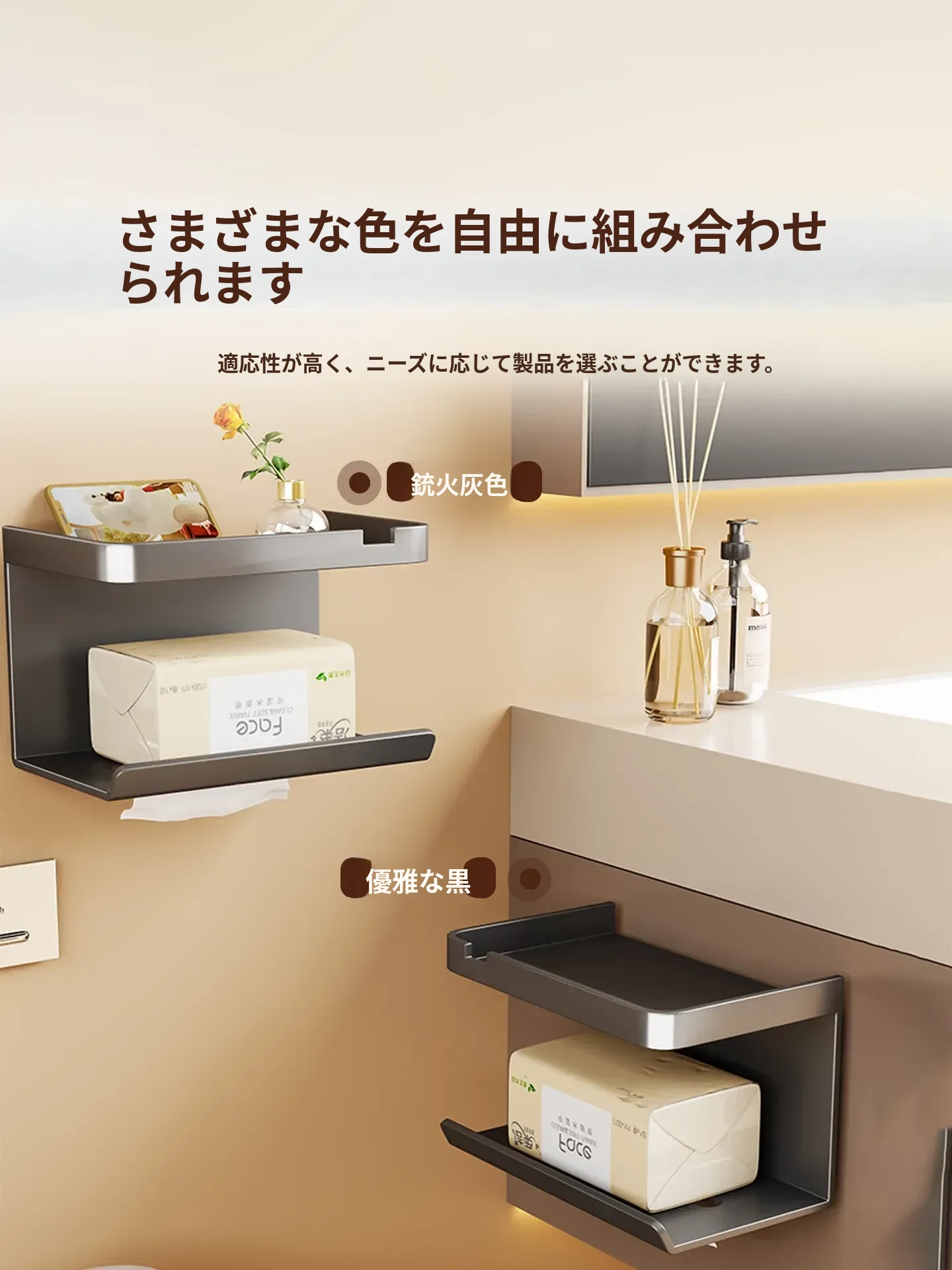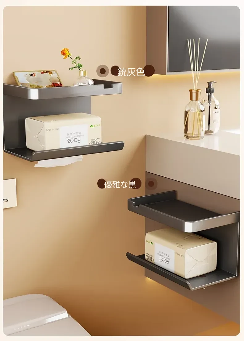 トイレットペーパーラック 壁掛け式 取り付け不要 防水設計 トイレティッシュ収納ラック バスルーム用 ロールペーパー・ティッシュボックス おしゃれで実用的な便利アイテム!