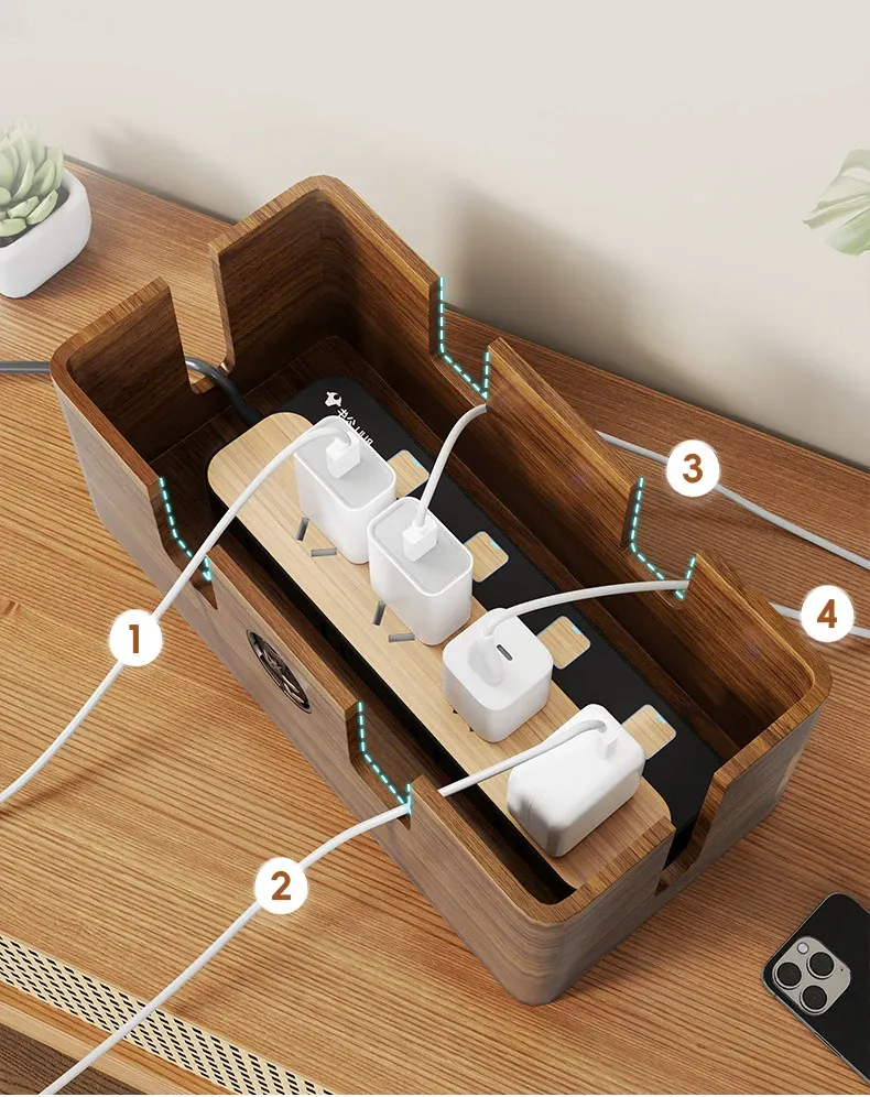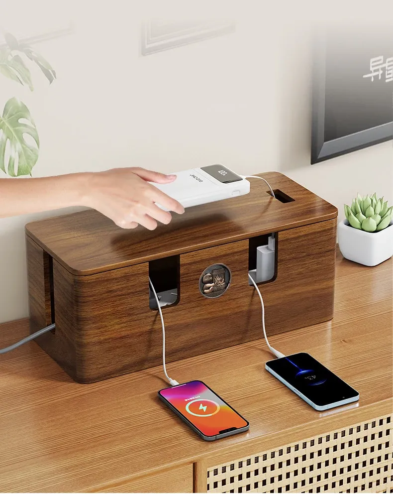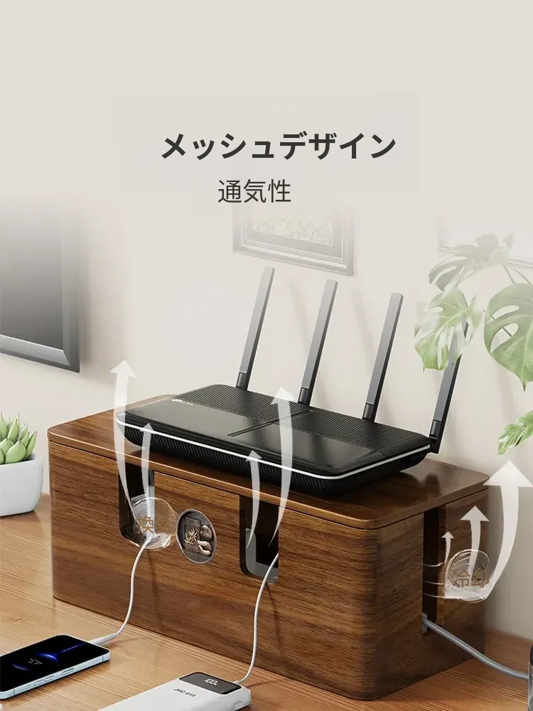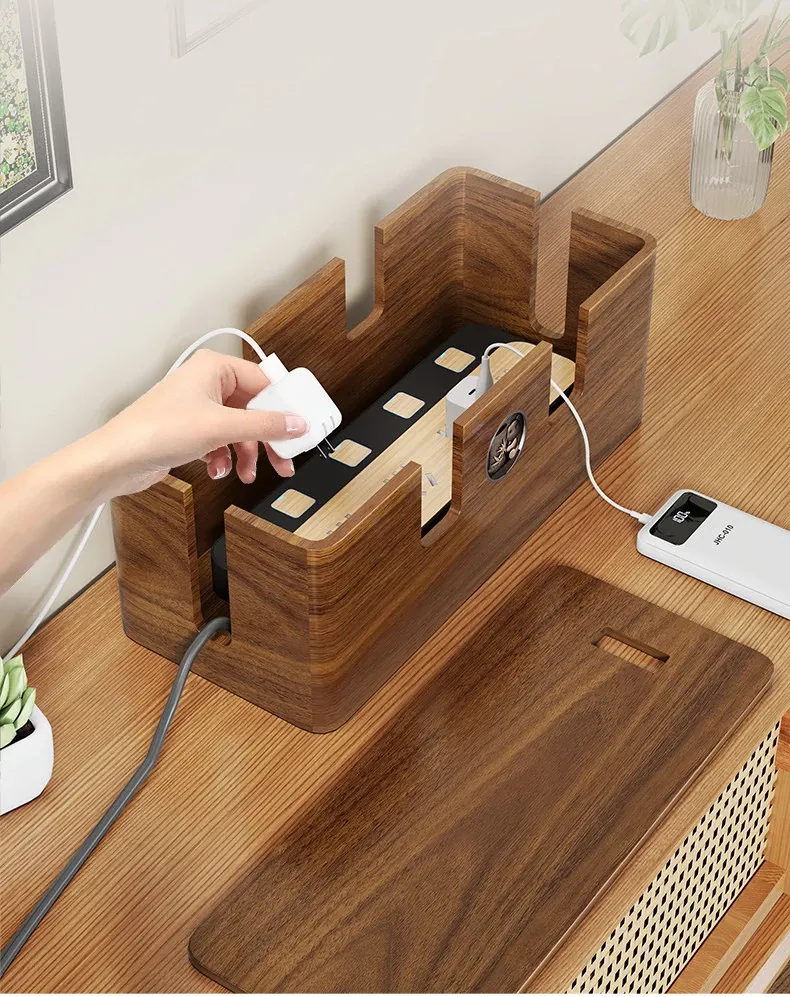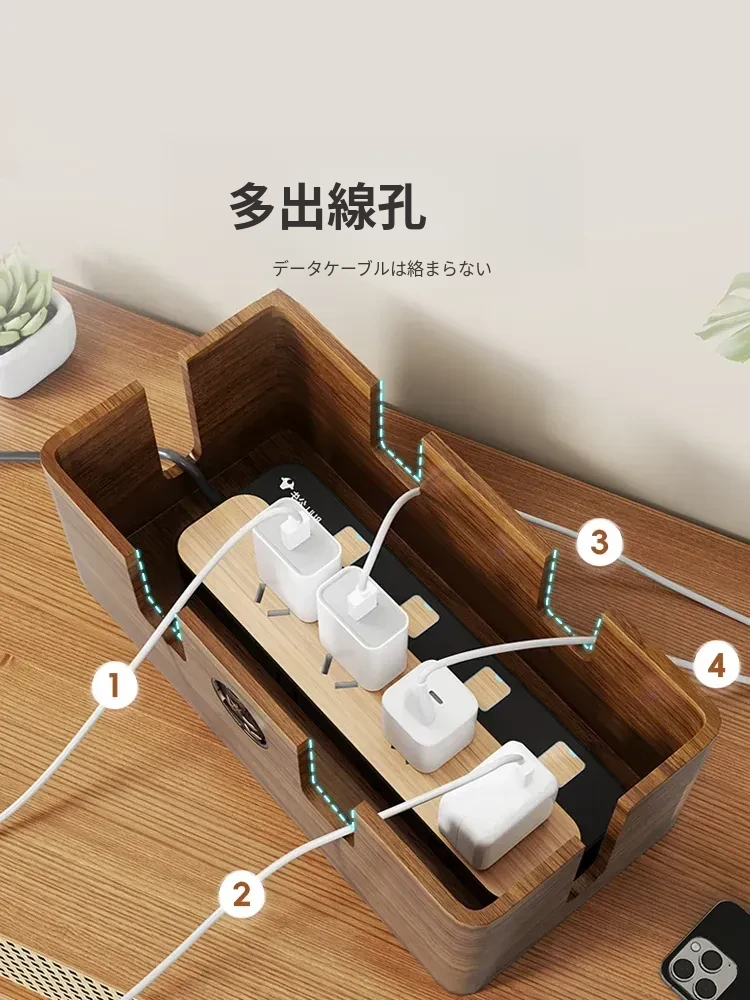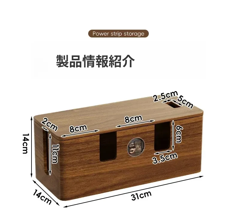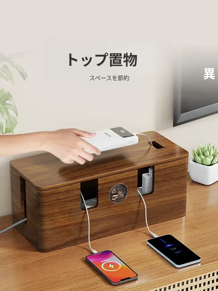 天然木製の集線ボックス - おしゃれなデザインで、電源タップやケーブルをすっきり整理!デスク周りを美しく保ちながら、使いやすさを追求した収納ボックスです。