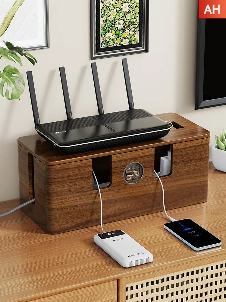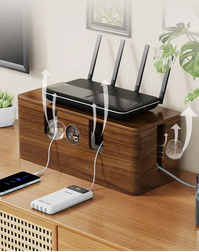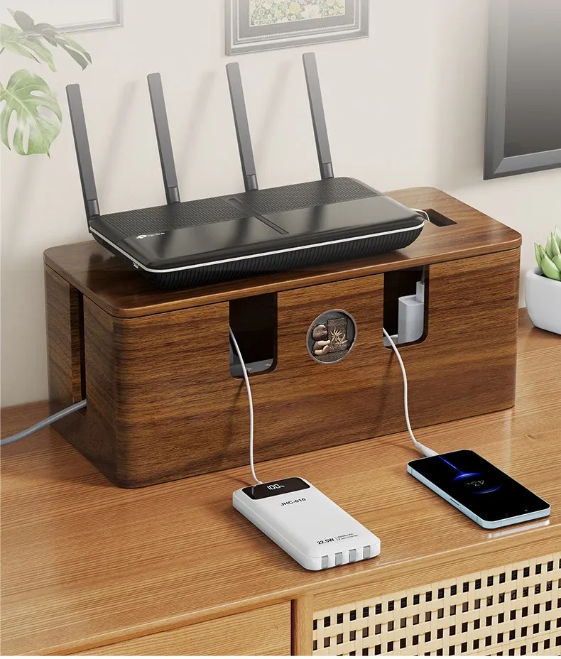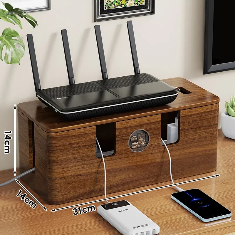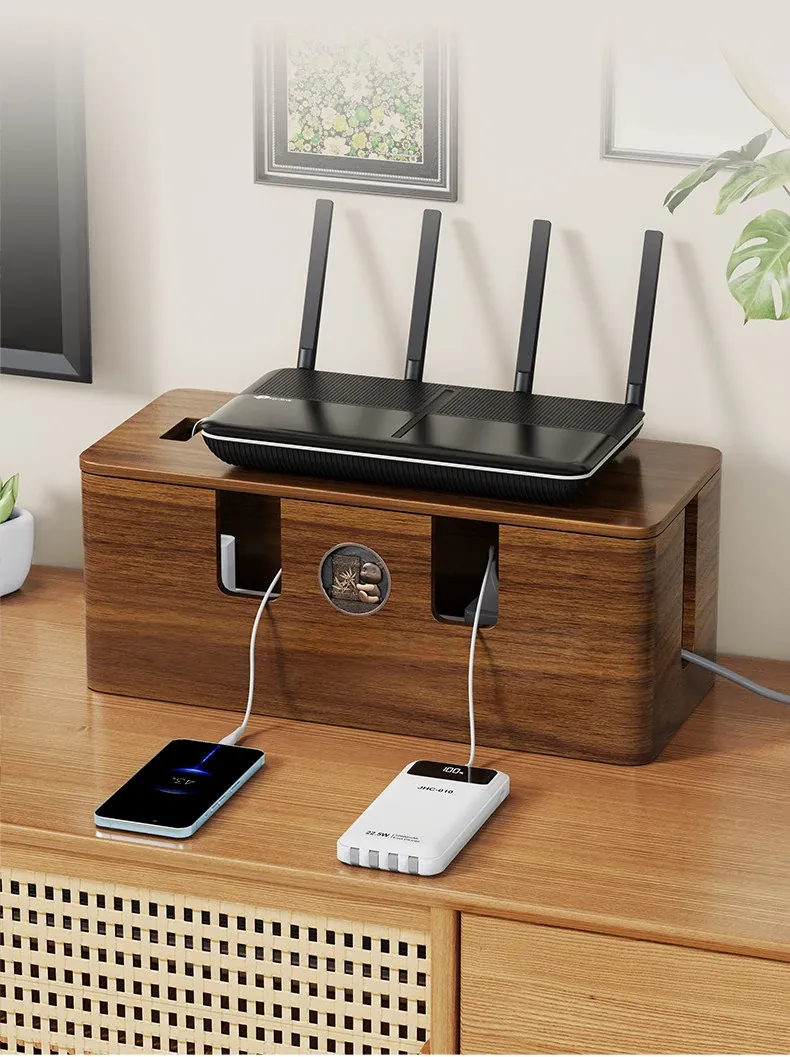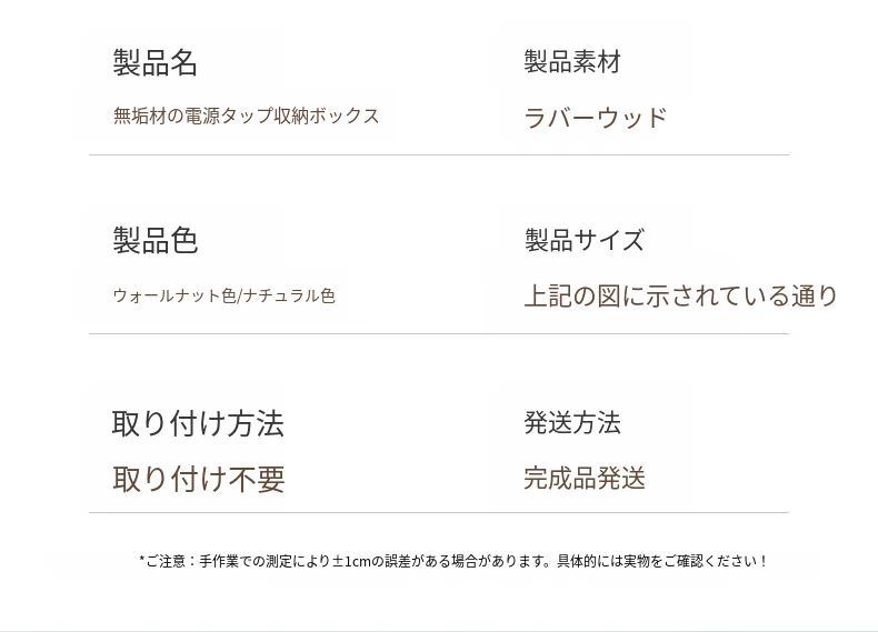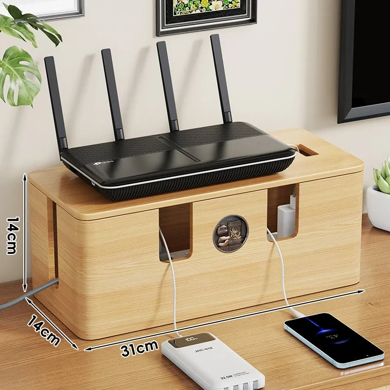 天然木製の集線ボックス - おしゃれなデザインで、電源タップやケーブルをすっきり整理!デスク周りを美しく保ちながら、使いやすさを追求した収納ボックスです。