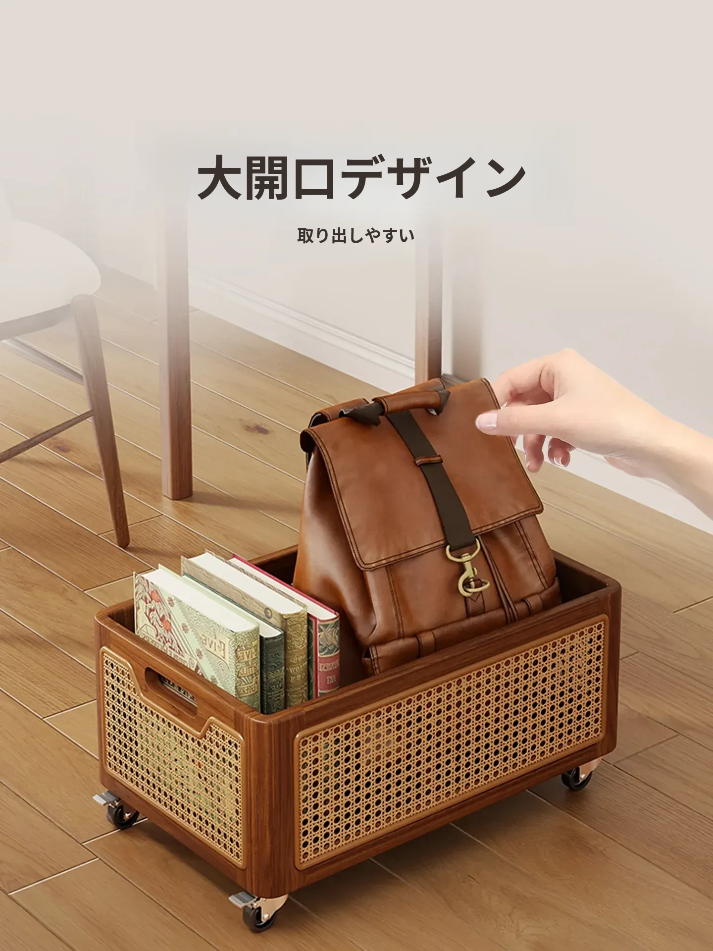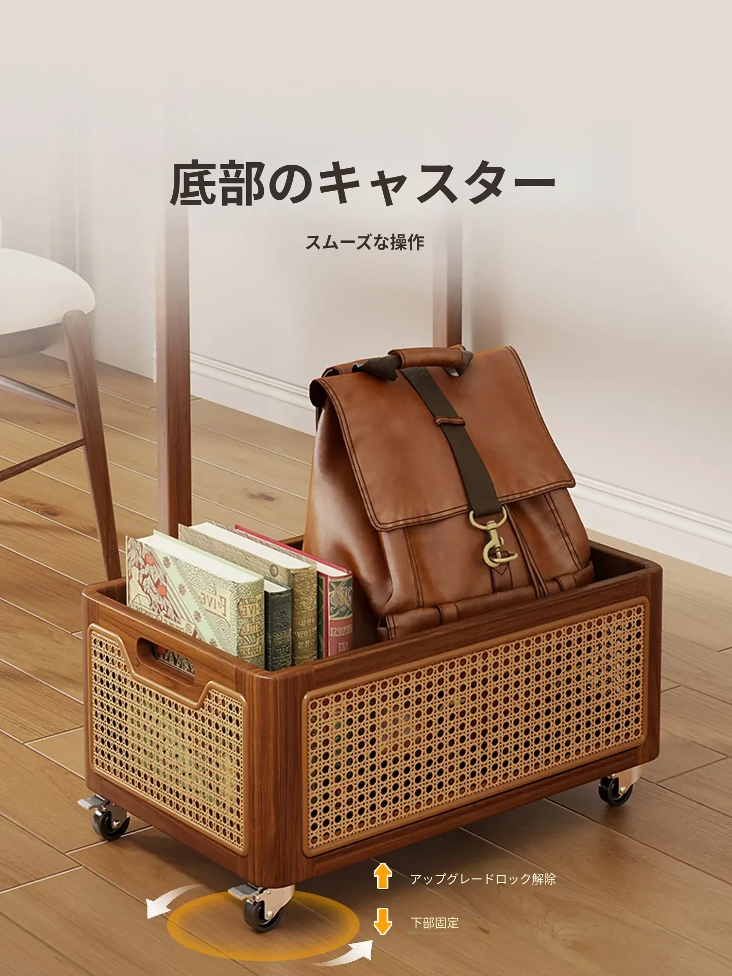 子供のための実木製キャスター付き収納ボックス!おもちゃやリュックサックをすっきり整理できる移動式小推車。便利な収納ラックで、遊び場や部屋をおしゃれに整頓!