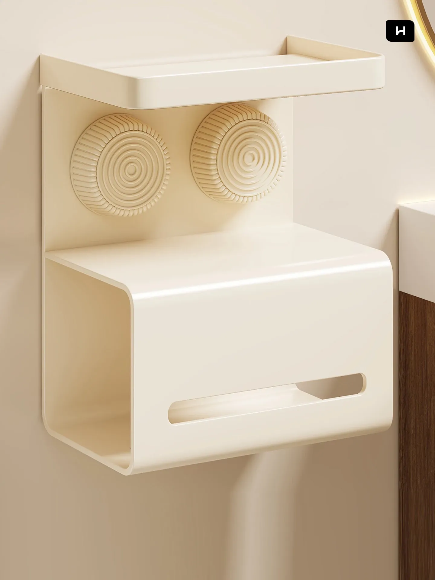 吸盤式トイレットペーパー&ティッシュホルダー - 壁掛けで簡単取り付け!穴を開けずに、衛生的でスタイリッシュなトイレ空間を演出。収納力抜群のトイレ収納グッズ!
