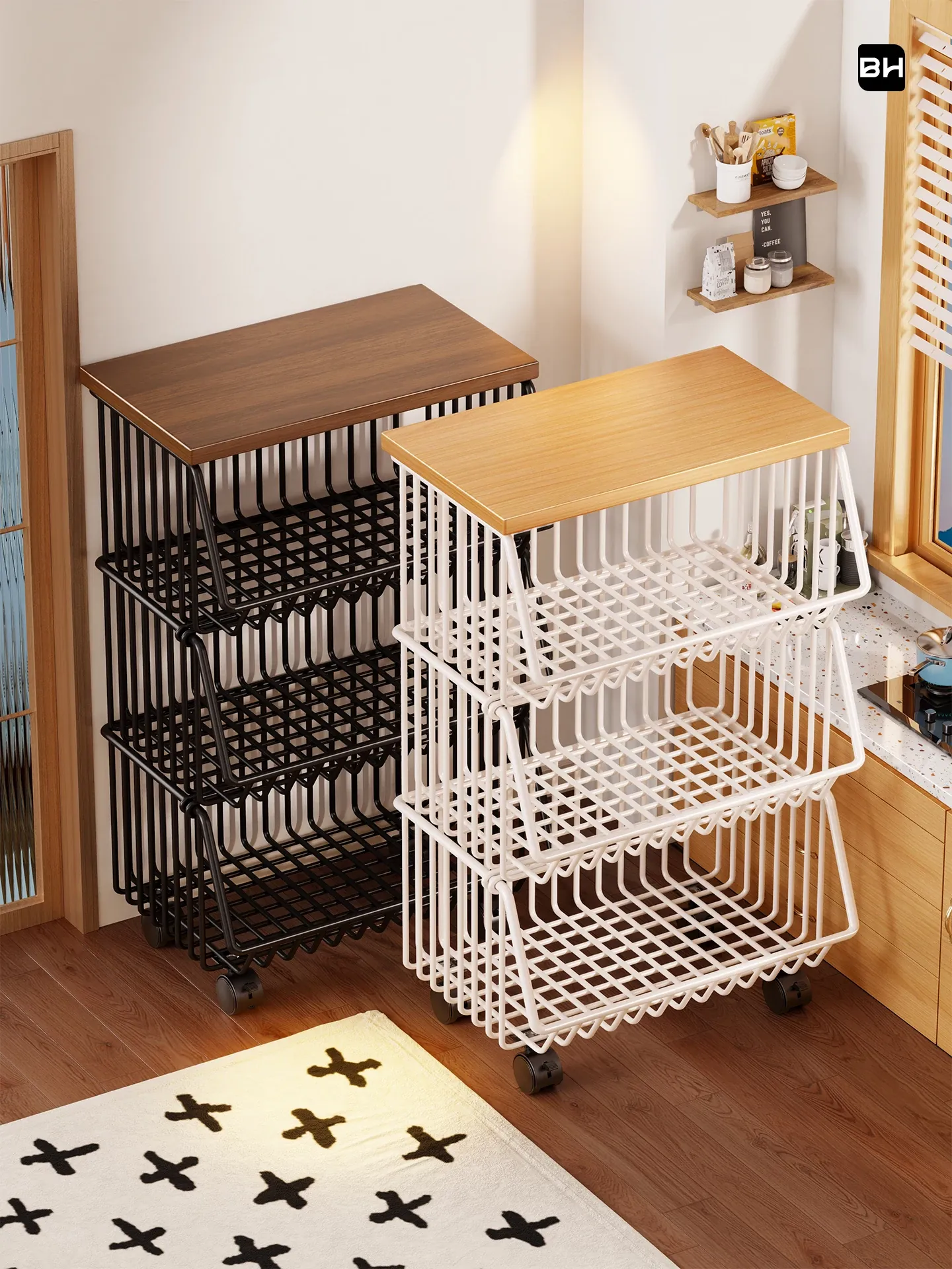 キッチン収納ラック - 野菜や果物のバスケット、調味料ラック、移動可能な多機能・段式スナック収納ラックで、整理整頓を簡単に実現!あなたのキッチンをすっきりと美しく保ちます。